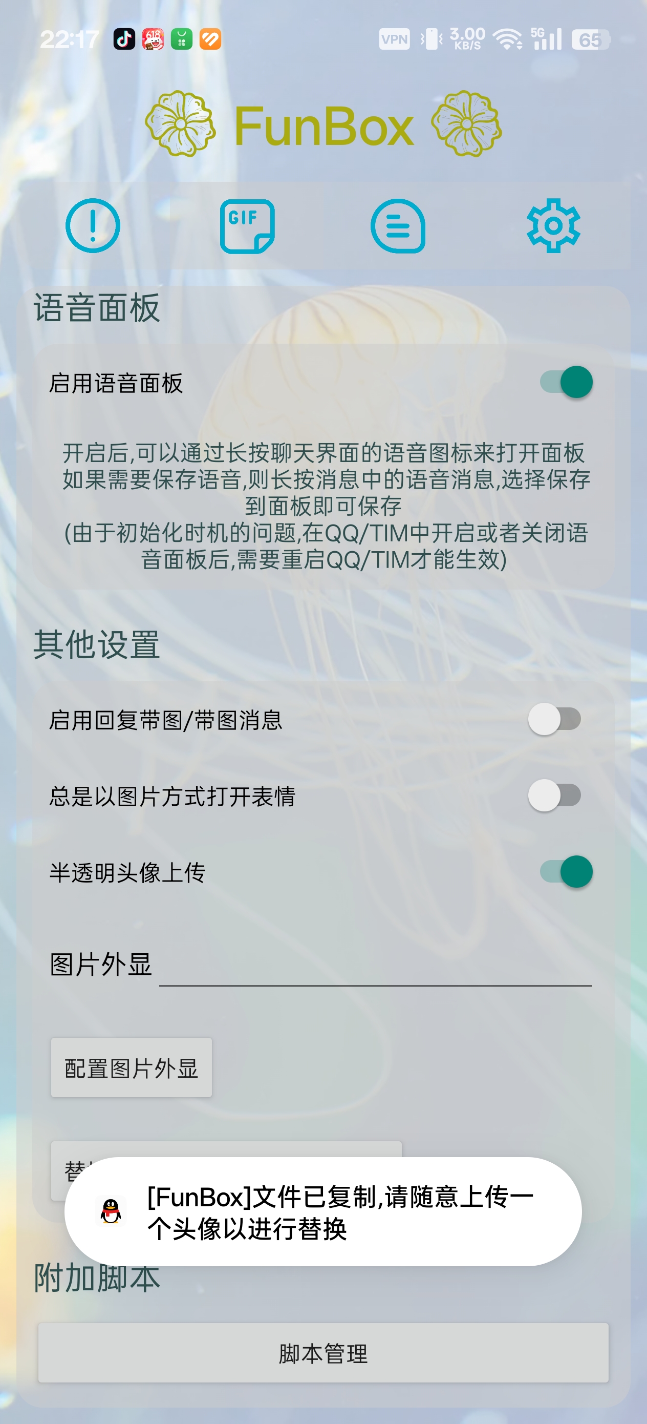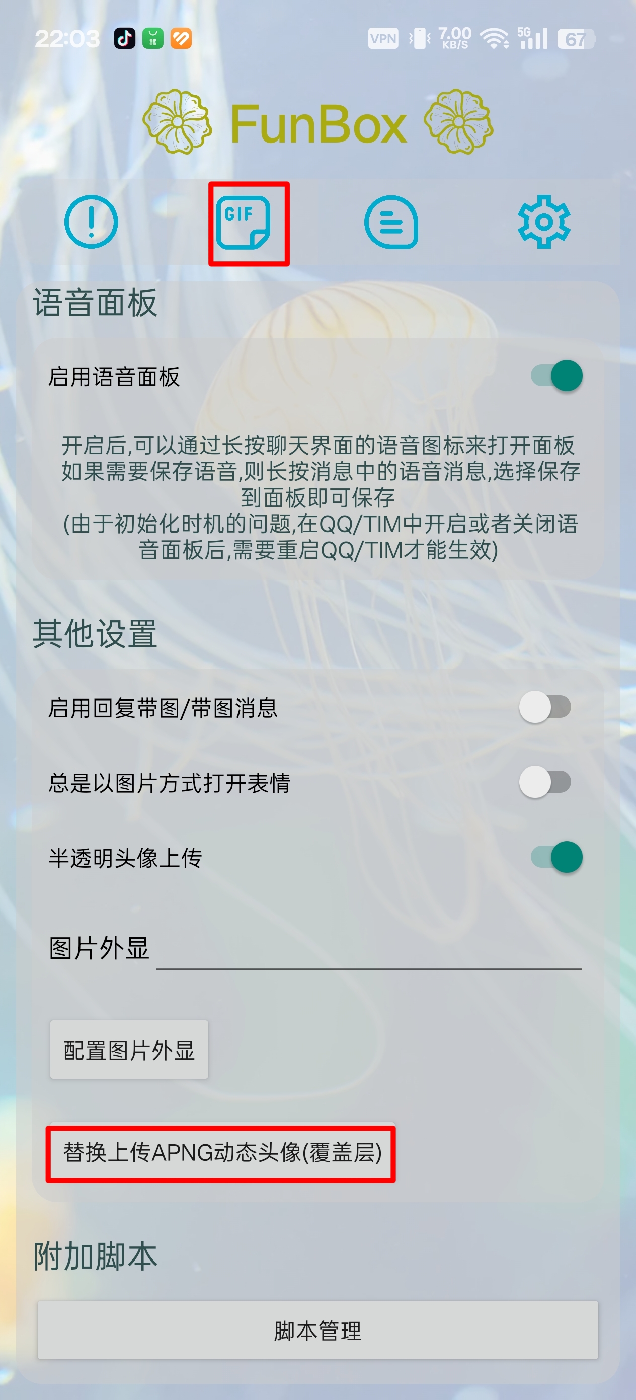 随后于QQ头像更换页面选择任意图片进行上传,FunBox将自动替换为之前选择的APNG图片,至此动态头像上传完毕。