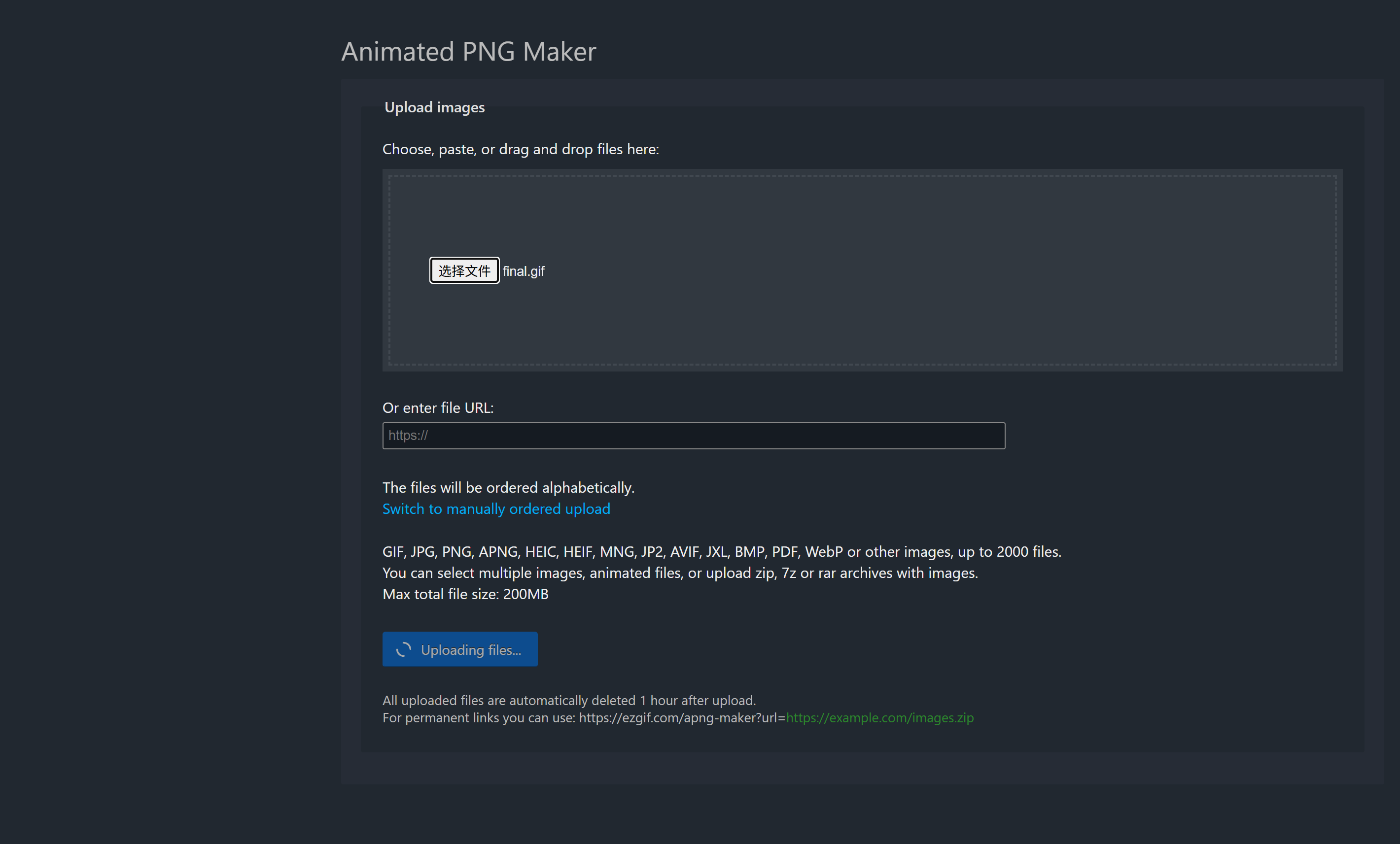 访问https://ezgif.com/apng-maker,选择gif图并上传: